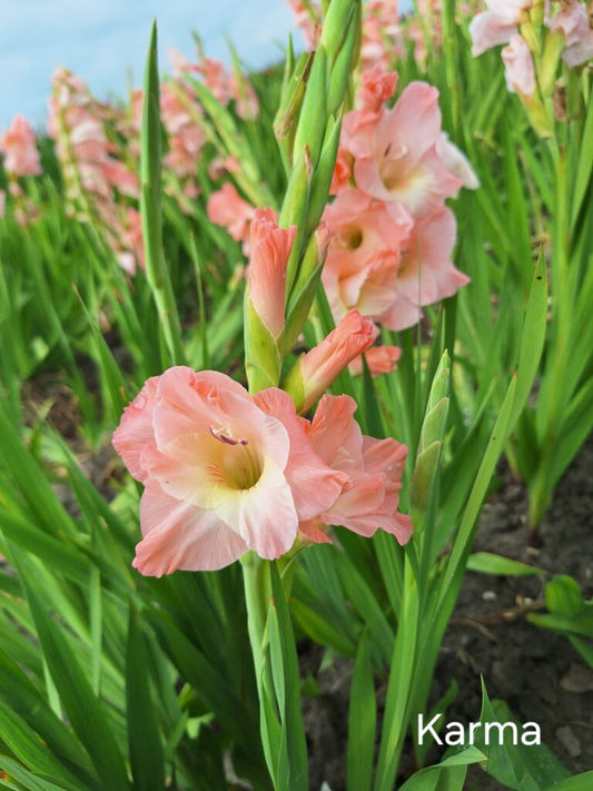 Gladioli are real summer bloomers and available in many colors. They have long green spikes, with many cheerful flowers on several sides of the stem. It is a flower bulb that almost always gives a beautiful result, both in the garden and as a cut flower in the vase.