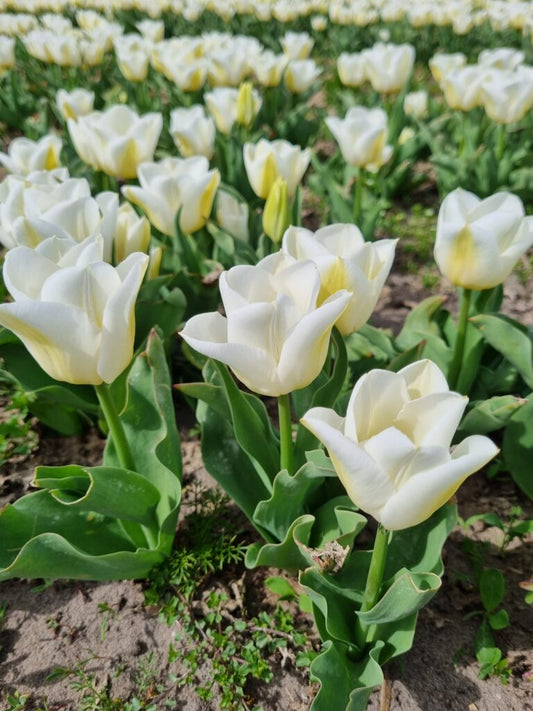 There are many misunderstandings about the naturalisation of tulips. None of the tulips really naturalise (expand). Our climate is simply too different from the natural habitats of the tulip (Central Asia) for that. However, some species will last longer in the border than others if you just leave them. The condition is that you remove the faded flower (heads) after flowering and make sure enough light, water and nutrition is there for another four weeks to form a new bulb that is large enough to bloom again the following year. This works best with varieties that put all their growing power into one new bulb. If a tulip produces several new bulbs, they will often remain too small in the garden to bloom. After a few years you will then only find a bunch of so-called single leaves without flowers. Species that we can recommend for permanent planting include AdRem, Ile de France, Inzell and Yokohama.