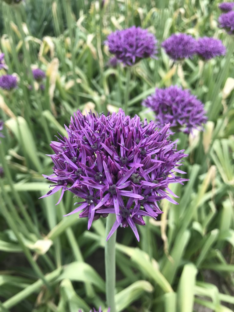 Ornamental onion, large bulbs full of small violet-purple flowers
