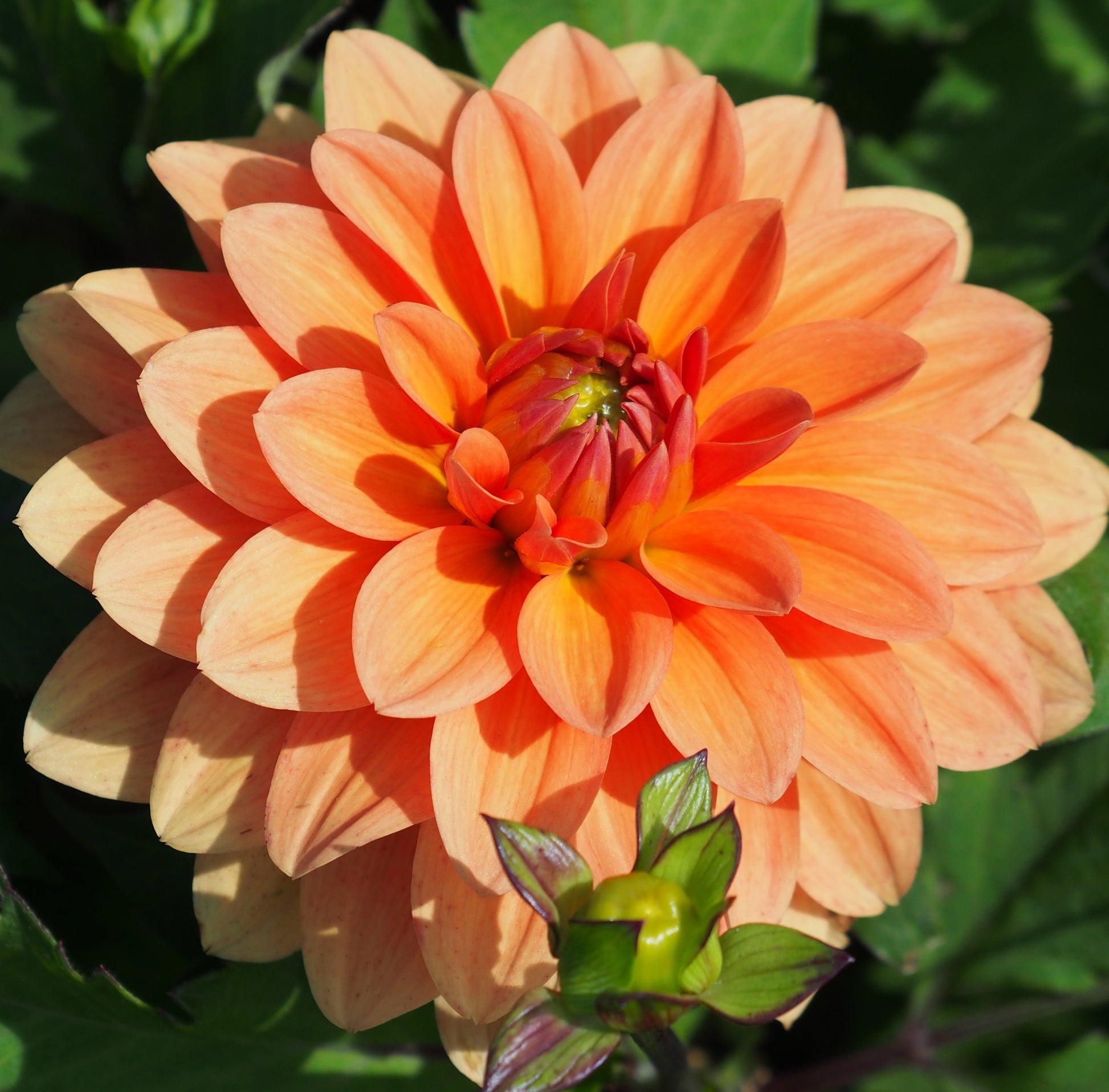 Deep orange dahlia. Can bloom for months, and is also very suitable as a cut flower for the vase, and certainly also suitable for planting in pots for the balcony or terrace.